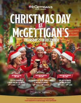 Whether you’re celebrating with a hearty lunch, a festive brunch, or a spirited evening drunch, McGettigan’s Adliya has your Christmas covered — good food, great drinks, and unbeatable holiday cheer!