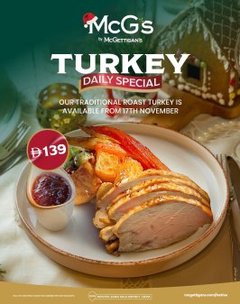 From 17th November, tuck into our hearty Traditional Roast Turkey at McG's by McGettigan's Deira for AED 139.