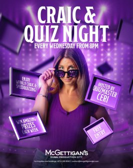 Join us at McGettigan's Dubai Production City for our Craic & Quiz Night fun.