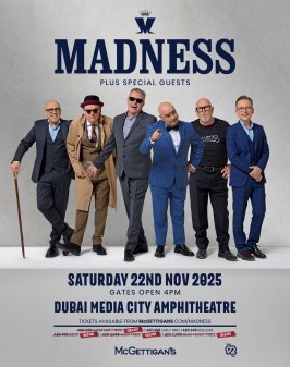 The iconic British band behind Our House, Baggy Trousers, and It Must Be Love will bring their full-throttle, feel-good energy to Dubai with McGettigan's for one unforgettable live show.