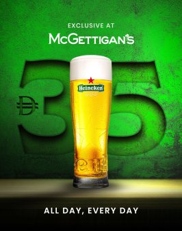 Enjoy a perfectly chilled Heineken for just AED 35, all day, every day.