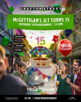 It’s McGettigan's JLT's 15th birthday — and we’re throwing the ultimate Grafton Street 2.0 Birthday Brunch to celebrate! 🎉