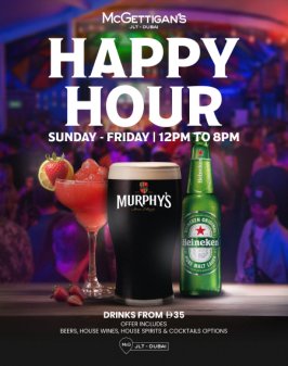 Enjoy Happy Hour specials from Sunday to Fiday at McGettigan's JLT.