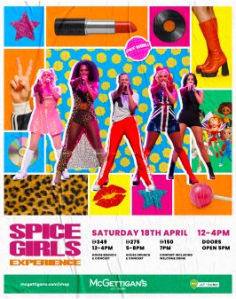 Spice Girls Experience at The Baggot, McGettigan’s JLT Get ready to zig-a-zig-ah your way through the ultimate Spice Girls tribute! Join us for a fun-filled brunch + concert day featuring the electrifying Spice Girls Experience.