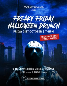 Enjoy 3 hours of unlimited drinks with packages starting from AED 195 (House) or AED 255 (Premium), and don’t forget to dress to impress — the best costumes will take home some wicked prizes!