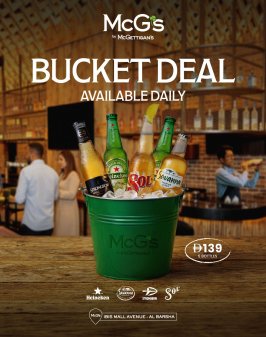 Our daily Bucket deal at McG's by McGettigan's Al Barsha has you sorted - just AED 139 for 5 bottles of beer.