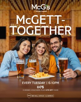 Round up your crew and kick off the week the right way with McGett-Together at McG’s by McGettigan’s Al Barsha.