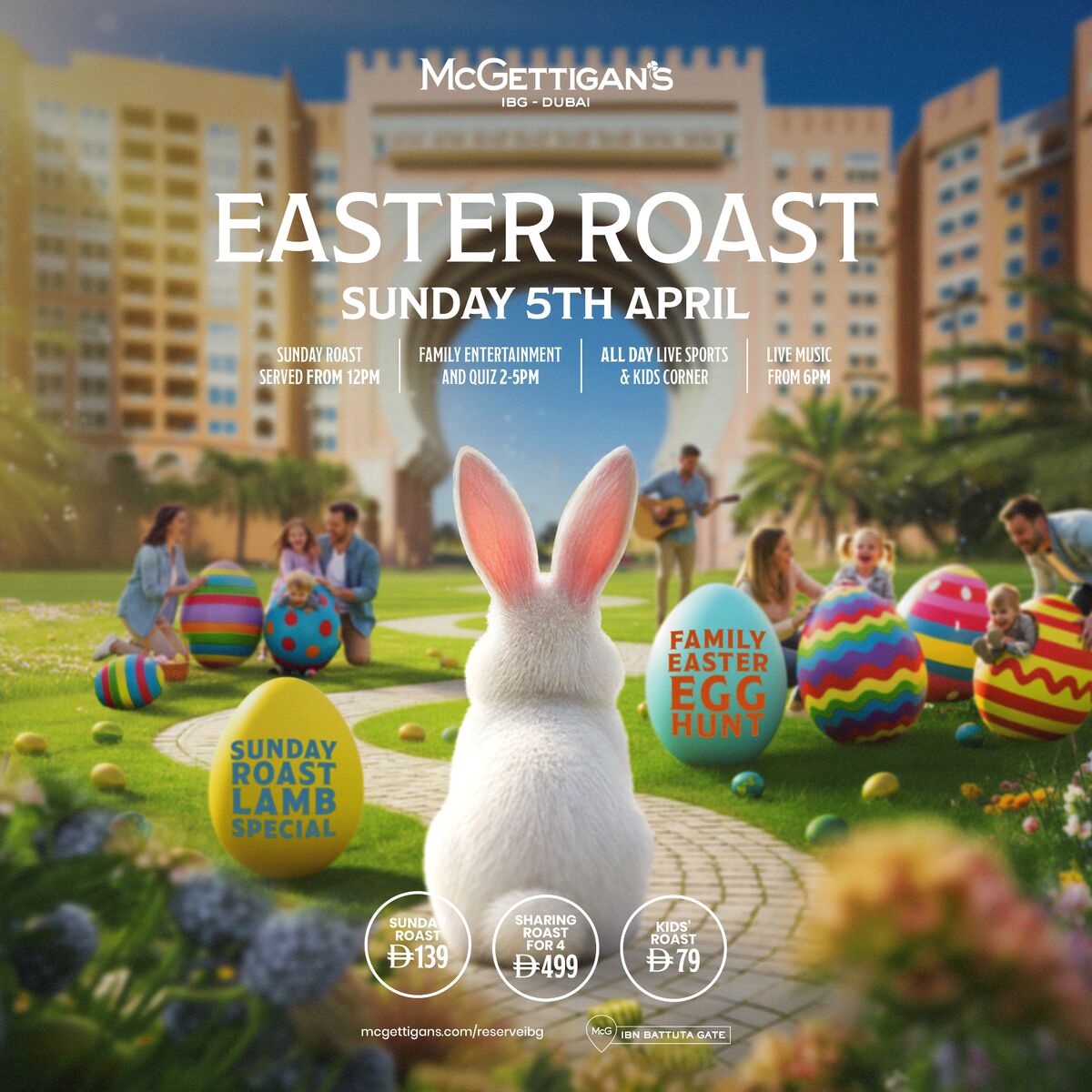 Make this Easter Sunday a celebration for the whole family at McGettigan’s Ibn Battuta Gate. Gather your loved ones and enjoy our delicious Sunday Roast with all the trimmings, while the kids take part in a fun-filled Easter Egg Hunt, searching high and low for sweet treats hidden around the venue.