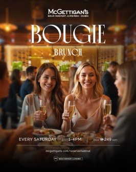 Step into a world of elegance where the champagne flows and food will tantalize your taste buds every Saturday from 1-4pm at McGettigan's Souk Madinat Jumeirah.