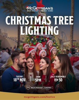 Join us at McGettigan's Souk Madinat from 5pm on Tuesday, 18th November for our Christmas tree lighting; marking the start of the festive season at McGettigan's!