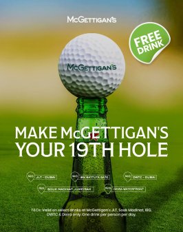 If you’re heading to the DP World Tour Dubai Desert Classic from Thursday, 22nd January to Sunday, 25th January, flash your event pass and enjoy one free select drink on us at your McGettigan’s of choice - the perfect post-golf pit stop.